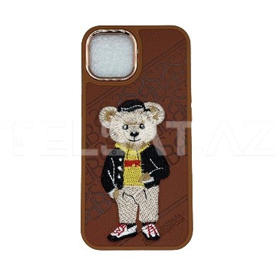 Qəhvəyi Rəngli Şirin Ayı Dizaynlı Apple iPhone 12 Telefon Qabı: