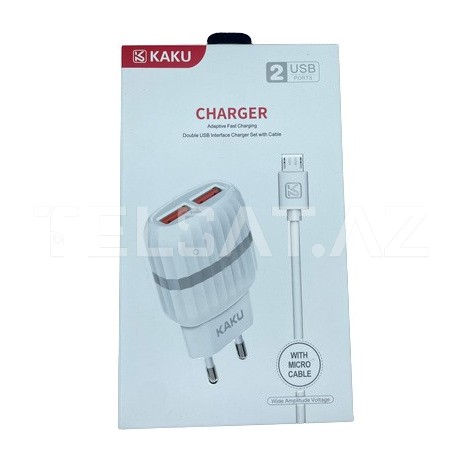 Kaku KSC-212, iki USB portu ilə təchiz olunmuş bir şarj cihazıdır. Bu cihaz, eyni anda iki cihazı şarj etmək üçün əla bir seçimdir.